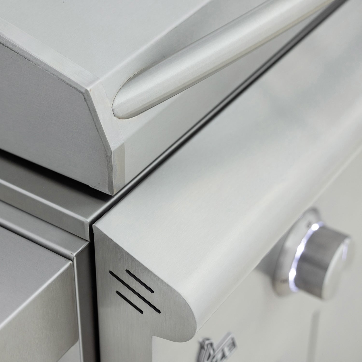 The Blaze LTE+ 30-Inch Gas Griddle is an enhanced take on a proven favorite, engineered to deliver improved safety, convenience, and cooking performance. This natural gas griddle features a spring-assisted lid with smooth operation, a front-facing drip trough for hassle-free cleanup, and updated LED knob lights for better visibility and control. Built with the reliability you expect from Blaze, the LTE+ combines innovative design upgrades with dependable cooking power to help you master outdoor griddle cooking. Constructed entirely from premium stainless steel, this griddle is built to withstand years of outdoor use. The U-shaped stainless steel burners ensure even heat distribution across the cooking surface, while the protective stainless steel lid keeps your griddle safe when not in use. Every component is engineered for lasting durability and consistent performance.