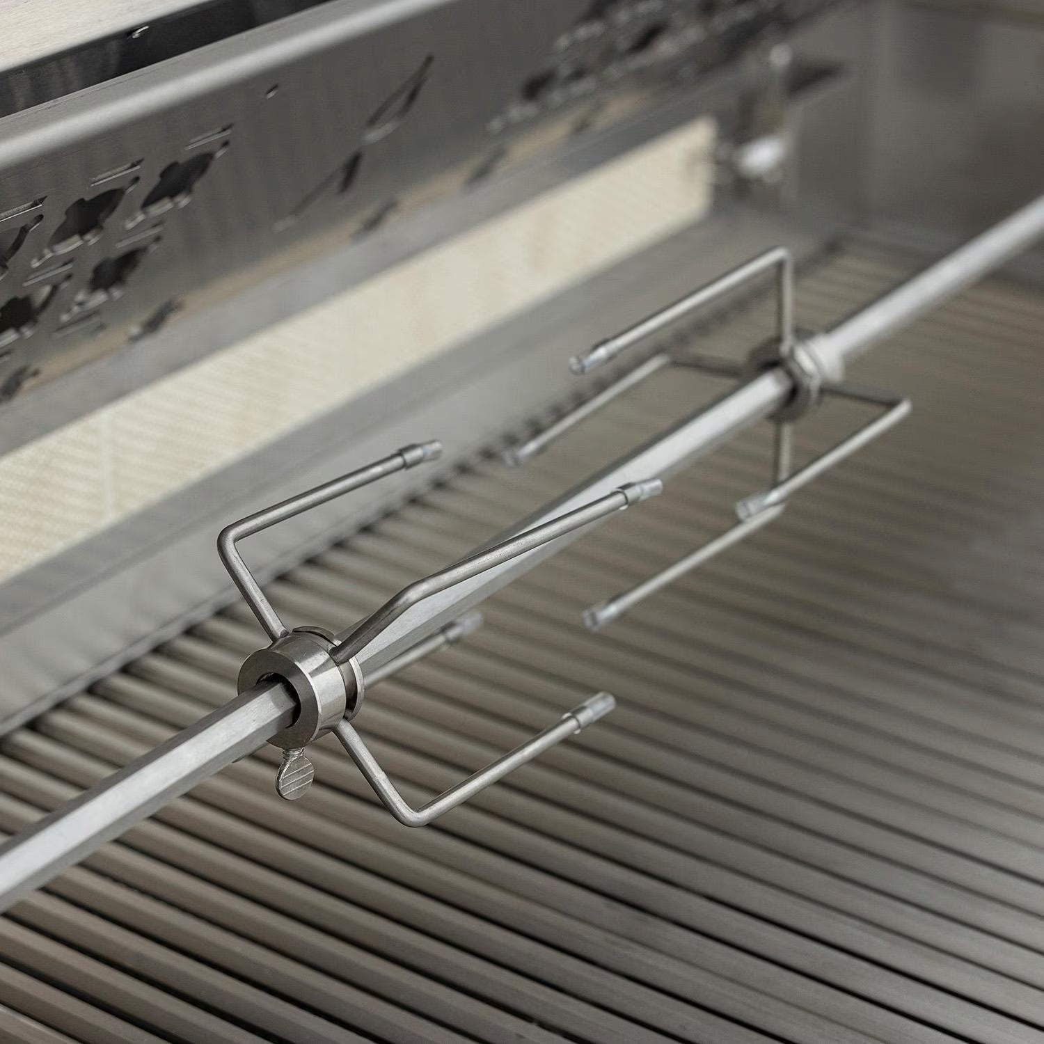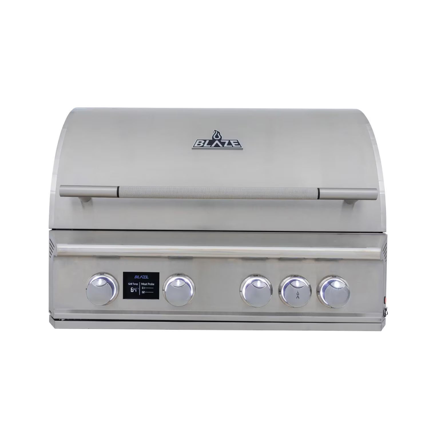 The Blaze LTE PRO 32-inch natural gas grill combines premium construction with innovative cooking features designed for serious grilling enthusiasts. Built entirely from 304 stainless steel with cast stainless steel burners, this grill delivers exceptional durability and reliable flame-thrower ignition. Four main burners provide 14,000 BTUs each, plus a 10,000 BTU rear burner for rotisserie cooking and warming. The upgraded 12mm hexagonal cast stainless steel grates offer superior heat retention for steakhouse-quality searing. A spring-assist hood with increased clearance accommodates larger cuts and whole poultry, while the digital control panel with dual meat probes ensures precise temperature monitoring. Additional conveniences include a versatile warming rack with specialized food holders, interior and knob lighting for safe evening cooking, and a double-lined hood to prevent discoloration. Four distinct cooking zones provide the flexibility to prepare any dish with professional results.
