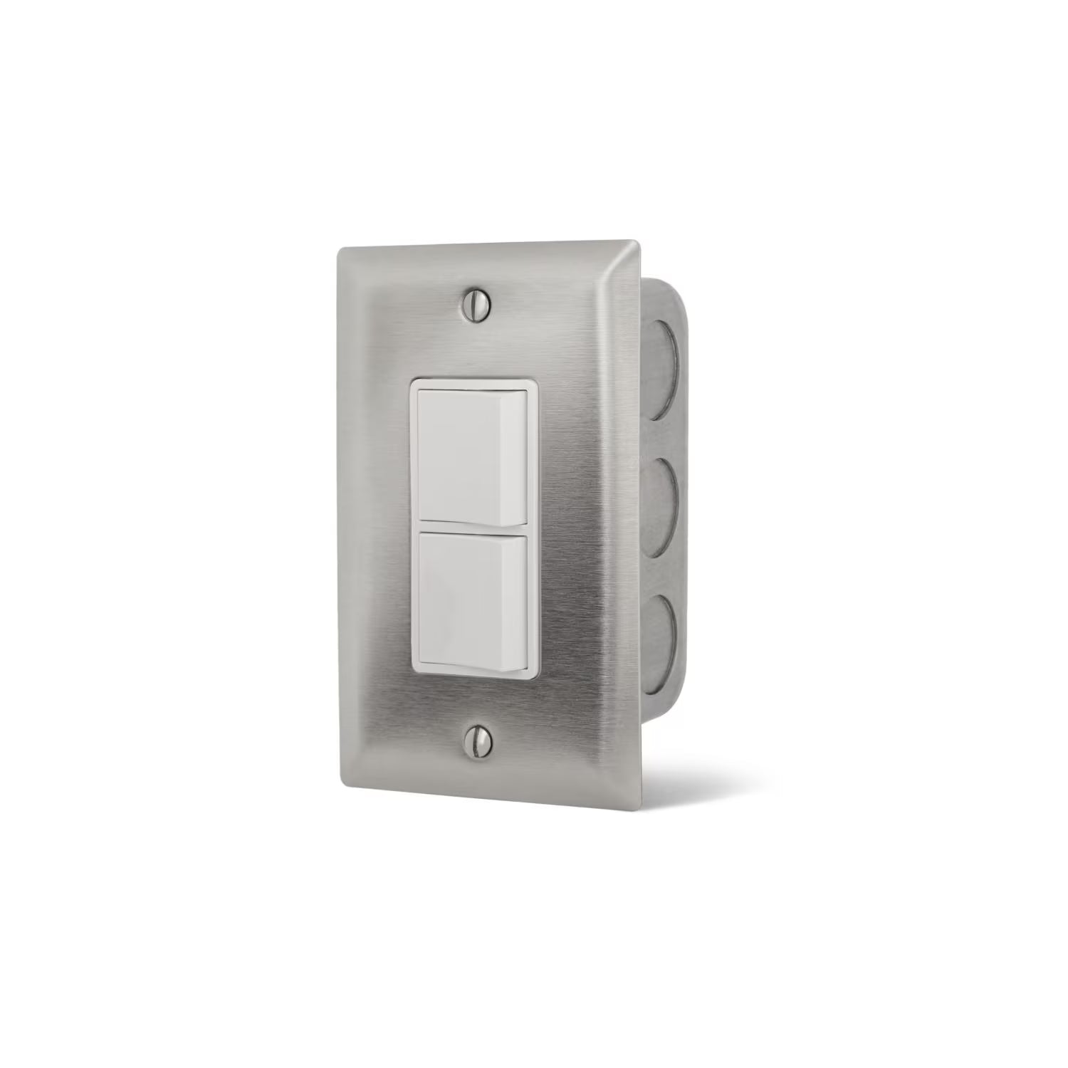 The Infratech Single Duplex Flush Mount with Stainless Steel Wall Plate and Gang Box provides precise control for dual element heaters like the WD-Series. Its duplex switch design allows independent operation of each element, offering half or full power options to optimize energy use. Suitable for both in-wall and surface mounting, it comes with or without weatherproof covers to fit diverse installation needs. This control solution combines versatility with budget-friendly functionality, making it a reliable choice for efficient heater management. Installation should be performed by a licensed electrician for safety and compliance.